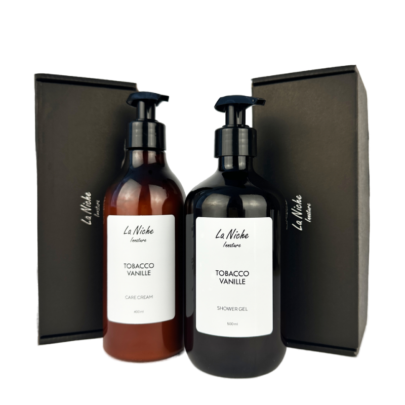 В набор Tobacco Vanille входит натуральный гель для душа и парфюмированный крем для тела и рук. Гель для душа эффективно и деликатно очищает кожу, а натуральный крем для тела и рук питает и увлажняет, оставляя на коже легкий аромат с нотами ванили и цветов табака.